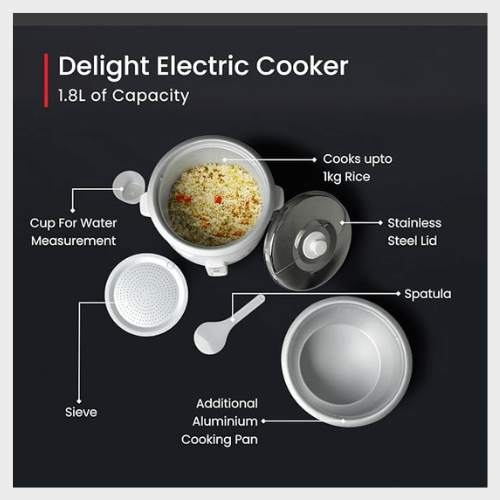 • Content: Prestige Delight Electric Rice Cooker (1.8 Open Type with Aluminium Cooking Pan-2U)