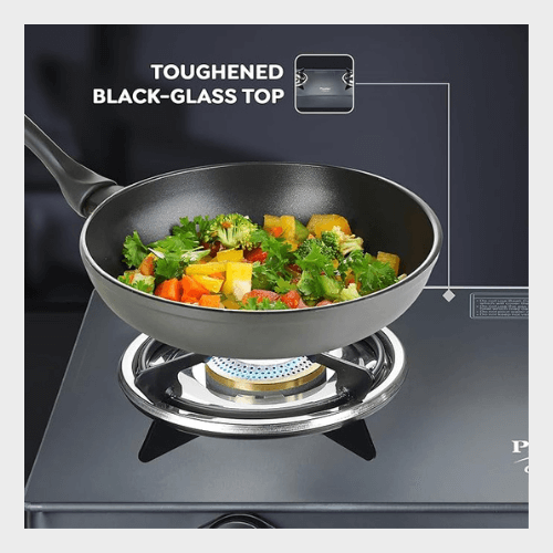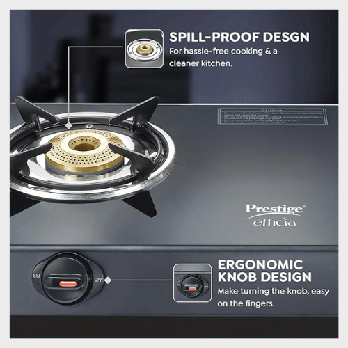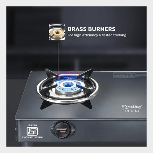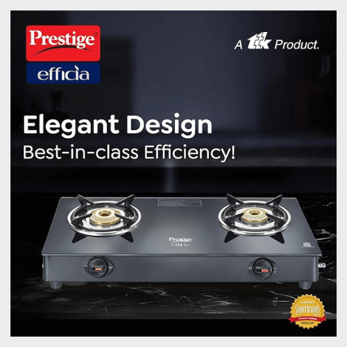 PRESTIGE EFFICIA LP GAS STOVE WITH POWDER-COATED BODY, GLASS TOP & 2 BRASS BURNERS