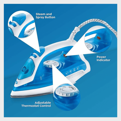| Special Feature | Adjustable Thermostat Control, Non Stick Coated Sole Plate, Water Spray, Steam Burst Mode, ISI certified Safety, Shock proof Plastic handle, Swivel Cord |