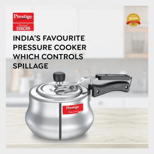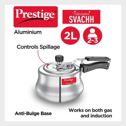 - The Nakshatra Plus Svachh Pressure handi is designed to last longer and comes with a unique lid that contains any spillage that might occur during the course of cooking and prevents the messy liquid from dripping down.