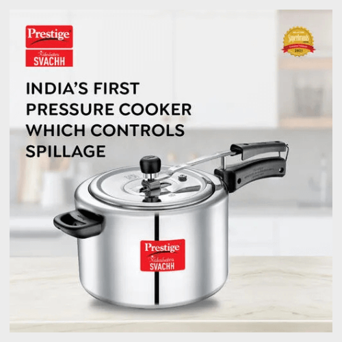 • PRESTIGE SVACHH, 10756, 3 L, ALUMINIUM INNER LID PRESSURE HANDI, WITH DEEP LID FOR SPILLAGE CONTROL, SILVER ₹1,750.00