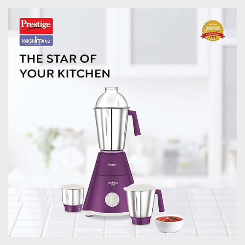 PRESTIGE NAKSHATRA V2 550W MIXER GRINDER WITH 3 STAINLESS STEEL JARS(PURPLE, DOME LID, ALUMINIUM JAR BASE)