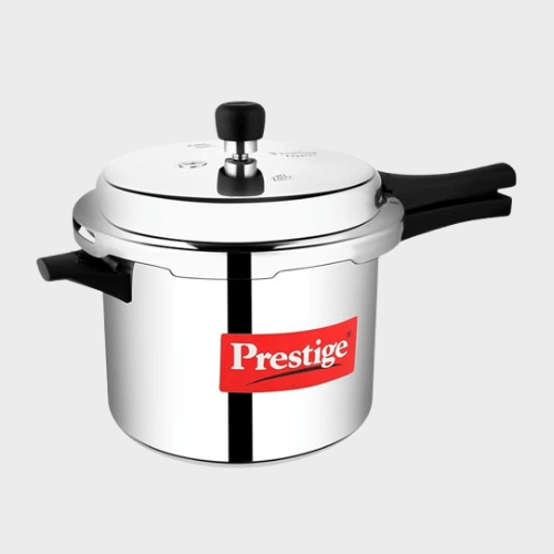 - BASE: Prestige Popular comes with an Aluminium base which is thick and machine pressed. The slight concave bottom ensures shape is retained for longer.;BODY: Prestige Popular is an outer lid pressure cooker made from virgin aluminium which is light in weight and long lasting. The outer lid feature is suitable for both separator cooking and direct vessel cooking.