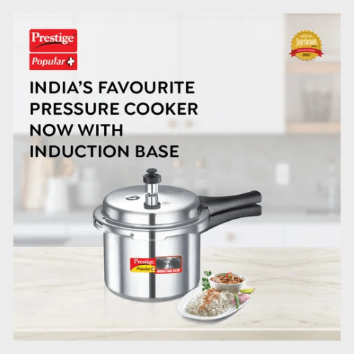 - BASE: Prestige Popular comes with an Aluminium base which is thick and machine pressed. The slight concave bottom ensures shape is retained for longer.